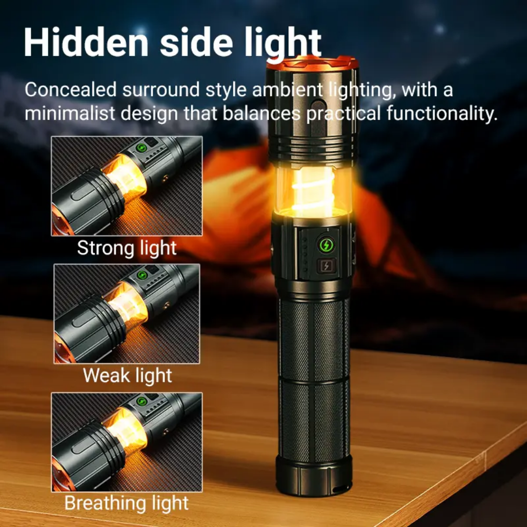 - دارای 5 حالت نوردهی در جلو آن _ دارای فانوس در وسط آن که دارای چند حالت است - دارای زوم تلسکوپی و بزرگنمایی_ دارای شب نما که در تاریکی مطلق به راحتی چراغ قوه مشخص است_ دارای باتری 5000 میل _بدنه فلزی و برد آن بالای 1000 متر است_ نمایش درصد شارژ آن به صورت دیجیتالی نیست و به صورت 4 عدد چراغ نشان داده میشه._ دارای جعبه کادویی و شیک مناسب هدیه