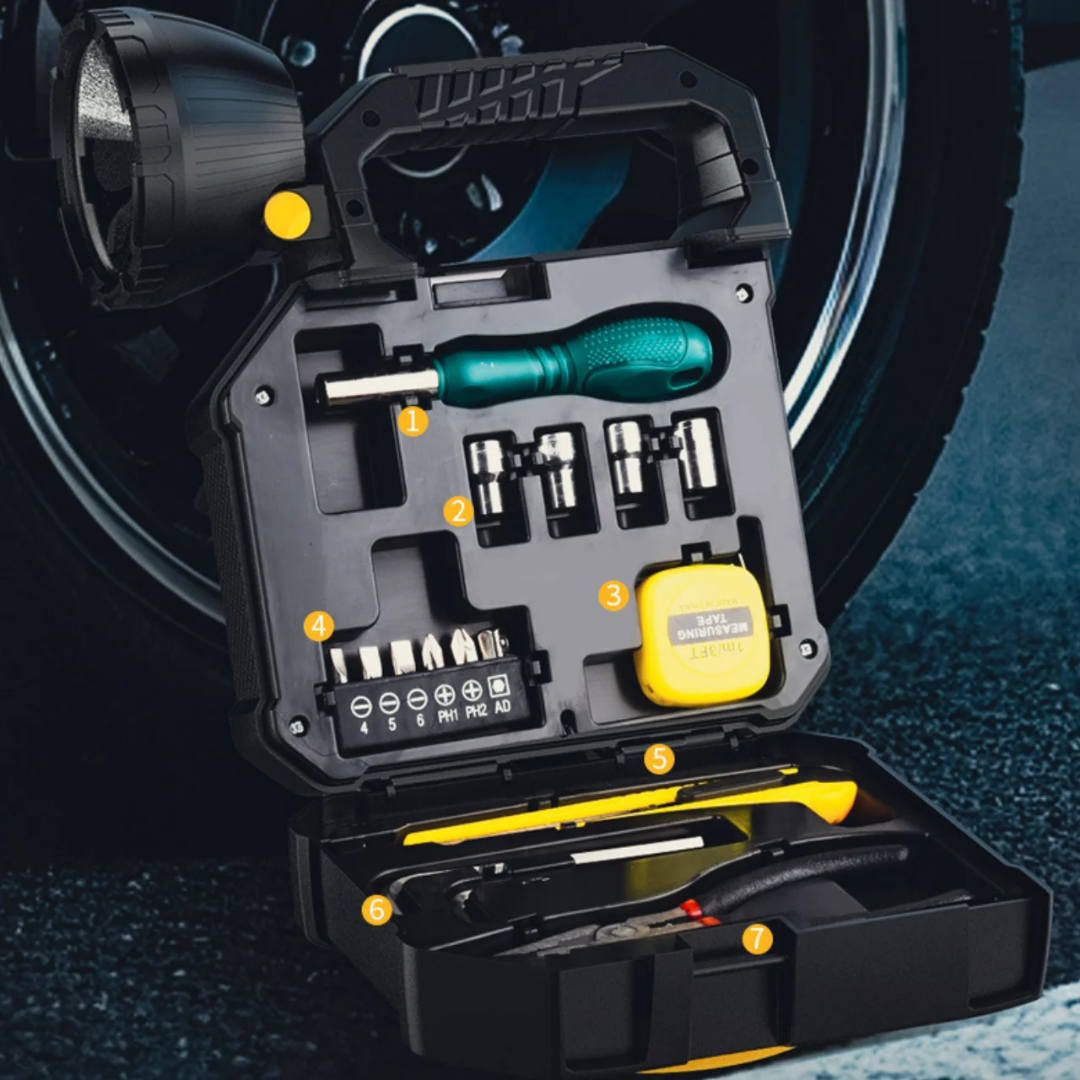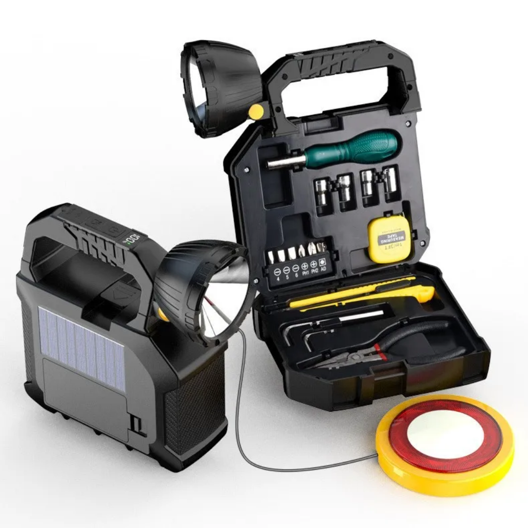 مدل: MX-5512وزن: 700 گرم رنگ: مشکی جنس بدنه: پلاستیک نمایشگر دیجیتال: دارد رنگ نور: قرمز, مهتابی منبع انرژی: باطری قابلیت استفاده به عنوان پاور بانک: داردنحوه شارژ محصول: امکان شارژ از طریق نور خورشید, امکان شارژ از طریق ورودی درگاه Type-Cدارای 2 باتری حالات نور دهیSOS | اضطراری, حالت پر نور, حالت چشمک زن, حالت کم نور, حالت مهتابی نوع محصول: چراغ اضطراری تعداد پورت USB: یک عددپنل خورشیدی: دارداقلام همراه کابل شارژ, دو عدد باتری قابل شارژ, متر, دو عدد آلن, انبر دم باریک, ست پیچ گوشتی با سری قابل تعویض, کاتر
