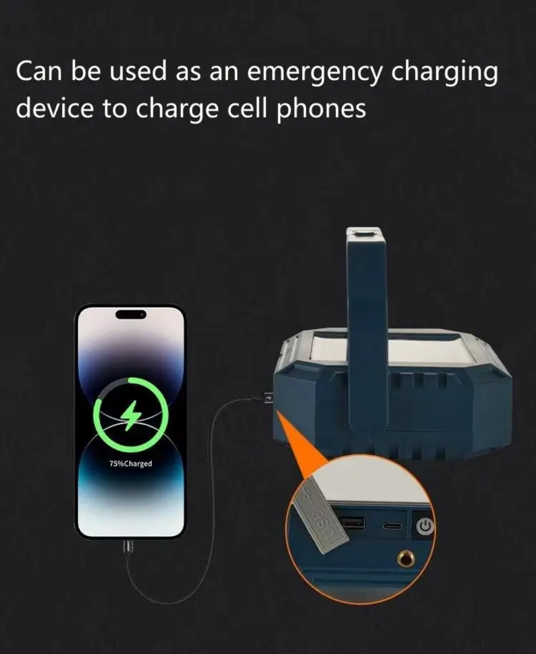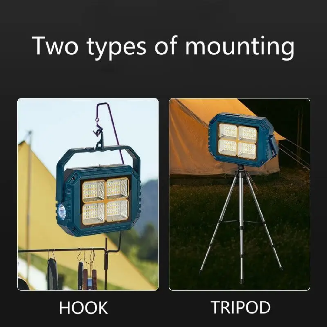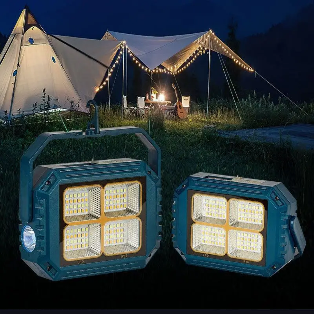 این چراغ شارژی یک نور افکن قوی و خوش ساخت با طراحی استاندارد است که مناسب روشنایی بیرونی در شب، برای کمپینگ، کوهنوردی، معدن، تعمیر ماشین، نگهبانی و… است. در ساخت این محصول از مواد با استحکام پلاستیکی ABS استفاده شده است. تامین انرژی این چراغ قوه از طریق باتری داخلی قابل شارژ توسط پورت USB همراه و با پنل خورشیدی است که به راحتی در صورت نبود برق با انرژی خورشیدی شارژ می شود. این چراغ قوه در صورت شارژ کامل حدود 4 ساعت با حداکثر روشنایی نوردهی می کند. بهره مندی از کلید فیزیکی بر روی بدنه به منظور روشن خاموش و تغییر حالات نوردهی از دیگر ویژگی های این محصول است و همچنین بهره مندی از پنل خورشیدی بر روی بدنه به منظور شارژ دستگاه، دارای پورت USB جهت شارژدهی (به عنوان پاوربانک) در مواقع اضطراری دارد. این چراغ قوه شارژی دارای 1 عدد چراغ قوه از نوع LED لنز دار در رو به رو و همینطور یک پروژکتور تشکیل شده از 4 SMD در قسمت جانبی که نور آفتابی مهتابی نچرال و حالت پلیسی را داراست. مجهز بودن به دسته جهت حمل آسان تر از مزیت های این محصول است.
