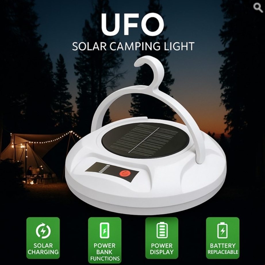چراغ شارژی مدل UFO، انتخابی منحصر به فرد برای روشنایی هر فضایی! با طراحی شیک و مدرن، این چراغ دارای باتری قدرتمند و قابلیت شارژ سریع است. مناسب برای کمپینگ، سفر و استفاده روزمره. با طول عمر بالا و نوردهی عالی، حال و هوای دلپذیری به محیط شما میبخشد. همین حالا خرید کنید و لذت ببرید! چراغ کمپینگ خورشیدی مدل UFO – همراه مطمئن سفرهای شمااگر به دنبال یک چراغ کمپینگ پرقدرت، کممصرف و چندکاره هستید، چراغ خورشیدی UFO انتخابی ایدهآل برای شماست.این محصول با توان ۱۰۰ وات، پنل خورشیدی، باتری قابل تعویض، قابلیت پاوربانک و نمایشگر میزان شارژ، تمام نیازهای شما در سفر، کمپینگ، کوهنوردی و قطع برق را پوشش میدهد.✅ قابلیت شارژ با انرژی خورشیدی✅ دارای نمایشگر باتری✅ عملکرد به عنوان پاوربانک✅ باتری قابل تعویض✅ طراحی زیبا و سبک با دسته آویزهمیشه روشن، همیشه همراه – UFO Camping