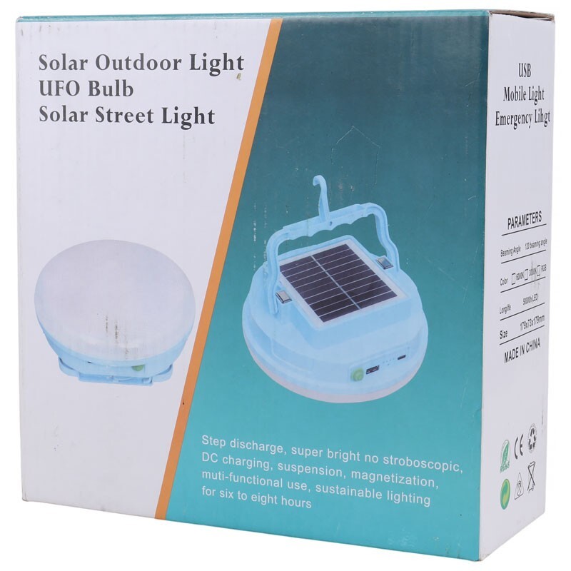 لامپ شارژی خورشیدی S03-200لامپ آویزدار شارژی خورشیدی مدل S03-200ساخته شده از جنس پلاستیک باکیفیت، مقاوم در برابر ضربه و فشار احتمالی، دارای چراغ نشانگر LED جهت اطلاع از وضعیت شارژبرخورداری از چراغ LED با نوردهی قوی، متوسط و چشمک زن، مناسب برای طبیعت گردی، کمپ، کوه نوردی، گردش و ...مجهز به کلید فیزیکی برای خاموش/ روشن کردن دستگاه و تغییر حالت نوردهی، دارای طول عمر مفید حدود 50000 ساعتتامین انرژی بوسیله باتری داخلی با امکان شارژ مجدد توسط پورت تایپ سی و پنل خورشیدی تعبیه شده روی بدنهدارای درگاه خروجی USB به منظور شارژ دستگاه های سازگار، بهره مندی از قلاب جهت آویختن چراغ