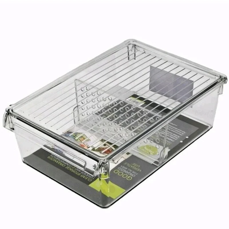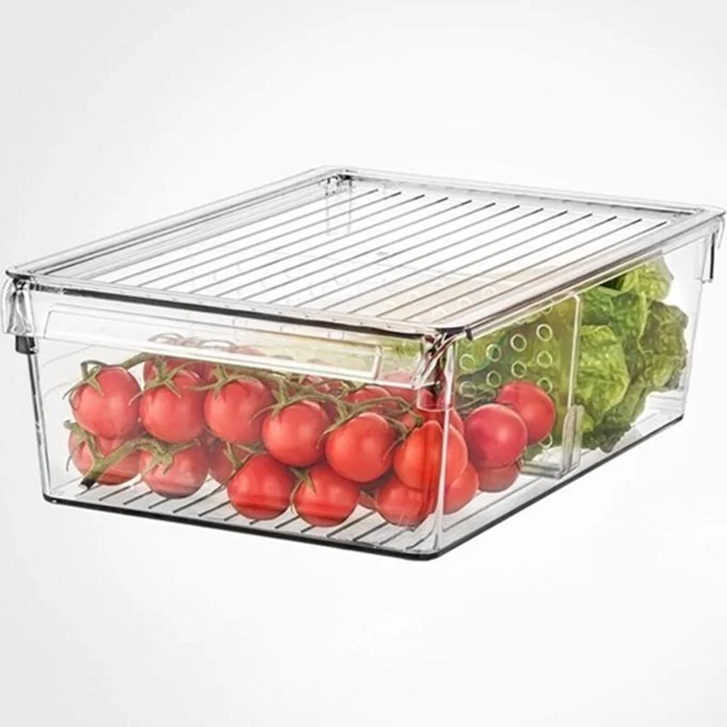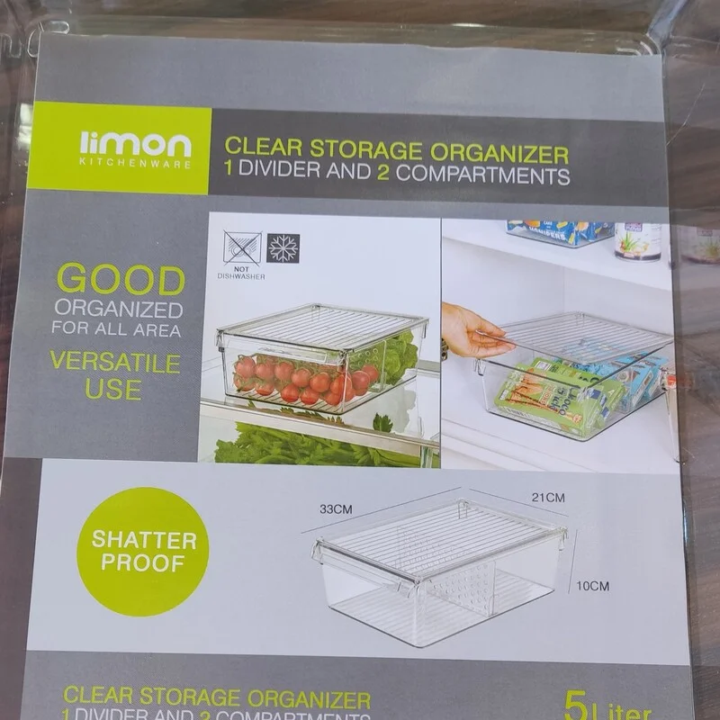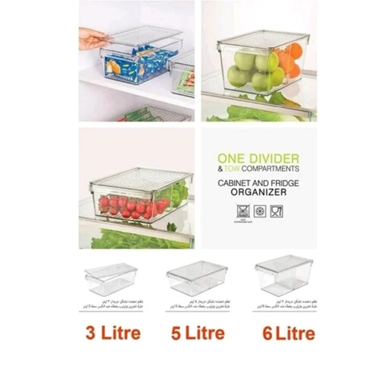 این محصول برای نظم دهی داخل یخچال و فریزر مناسبه و 5 لیتر فضا داره، یه مقسم داره برای تقسیم فضای داخلش، از جنس اکرولیک هستش و غیر قابل استفاده برای ماکروفر و ماشین ظرفشویی...ابعاد: 33*21*10 بسیار شیک و باکیفیت جهت نگهداری و تازه ماندن انواع سبزیجات و میوه جات مناسب برای:قرارگیری مواد غذایی به صورت منظم و تفکیک شده ///نظم دادن به وسایل داخل کابینت ///نظم بخشیدن به مواد غذایی داخل یخچال